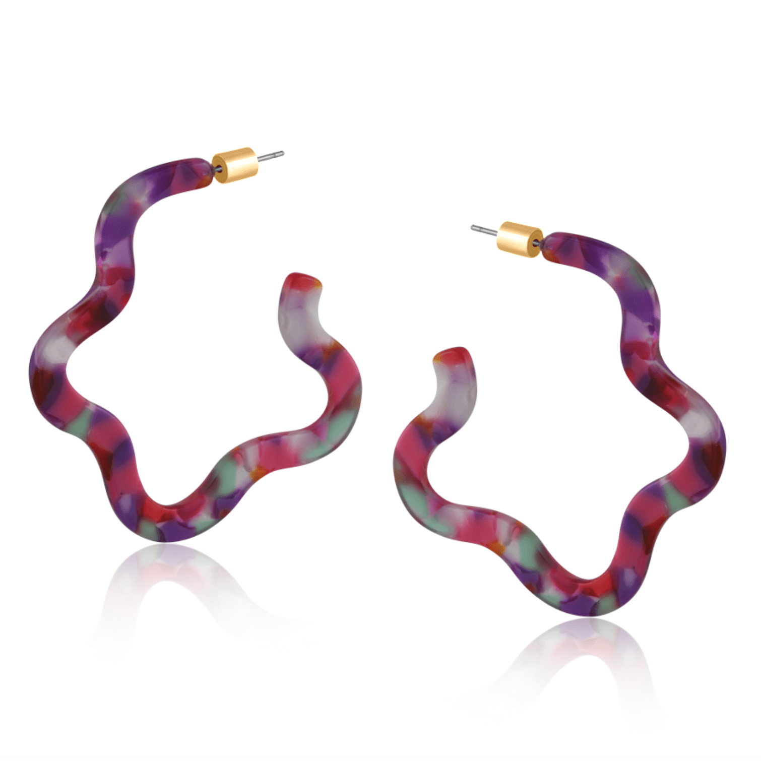 In vibrant colours, these resin squiggle earrings are a bold addition to your jewellery collection. Made with sustainable resin, which we source from leftover product of glass frame makers. We then recycle it to create our vibrant patterns. All posts are hypoallergenic made from surgical steel.