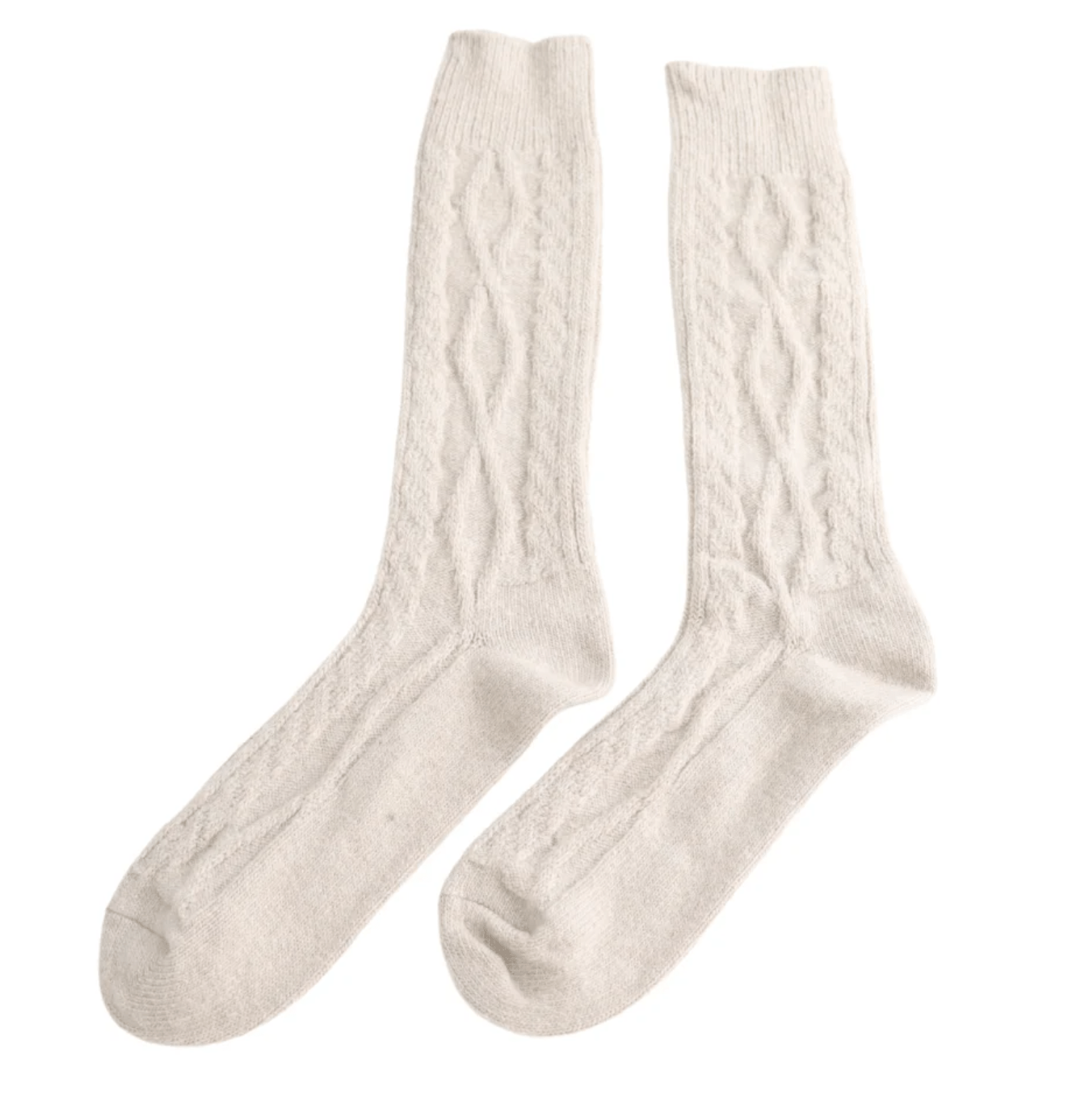 Knitted in a textured cable pattern and crafted from a premium blend of 35% wool, 8% alpaca, 30% polyamide, 24% polyester and 3% elastane, they offer the ideal balance of warmth, softness and stretch. The alpaca and wool provide natural insulation, while the added fibres ensure durability and a comfortable fit for UK women’s sizes 3–7.
