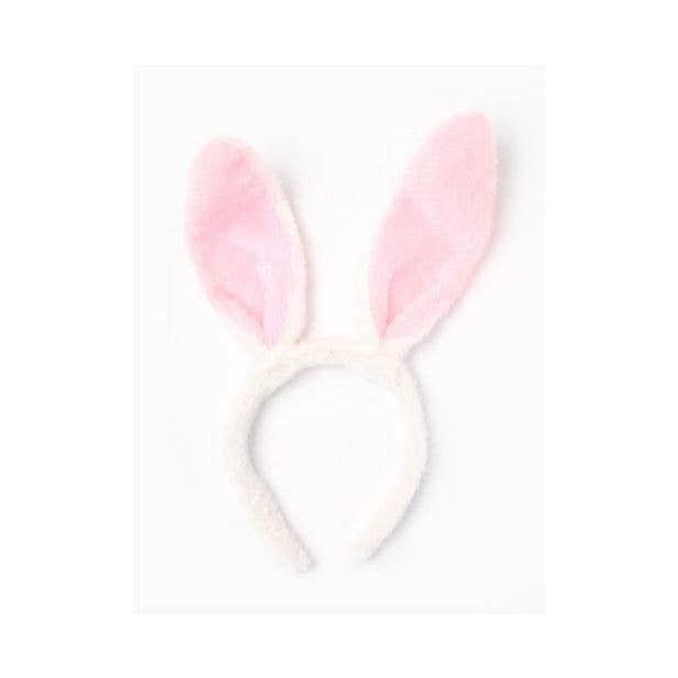 Pink and white fur fabric bunny rabbit ears Plastic aliceband .