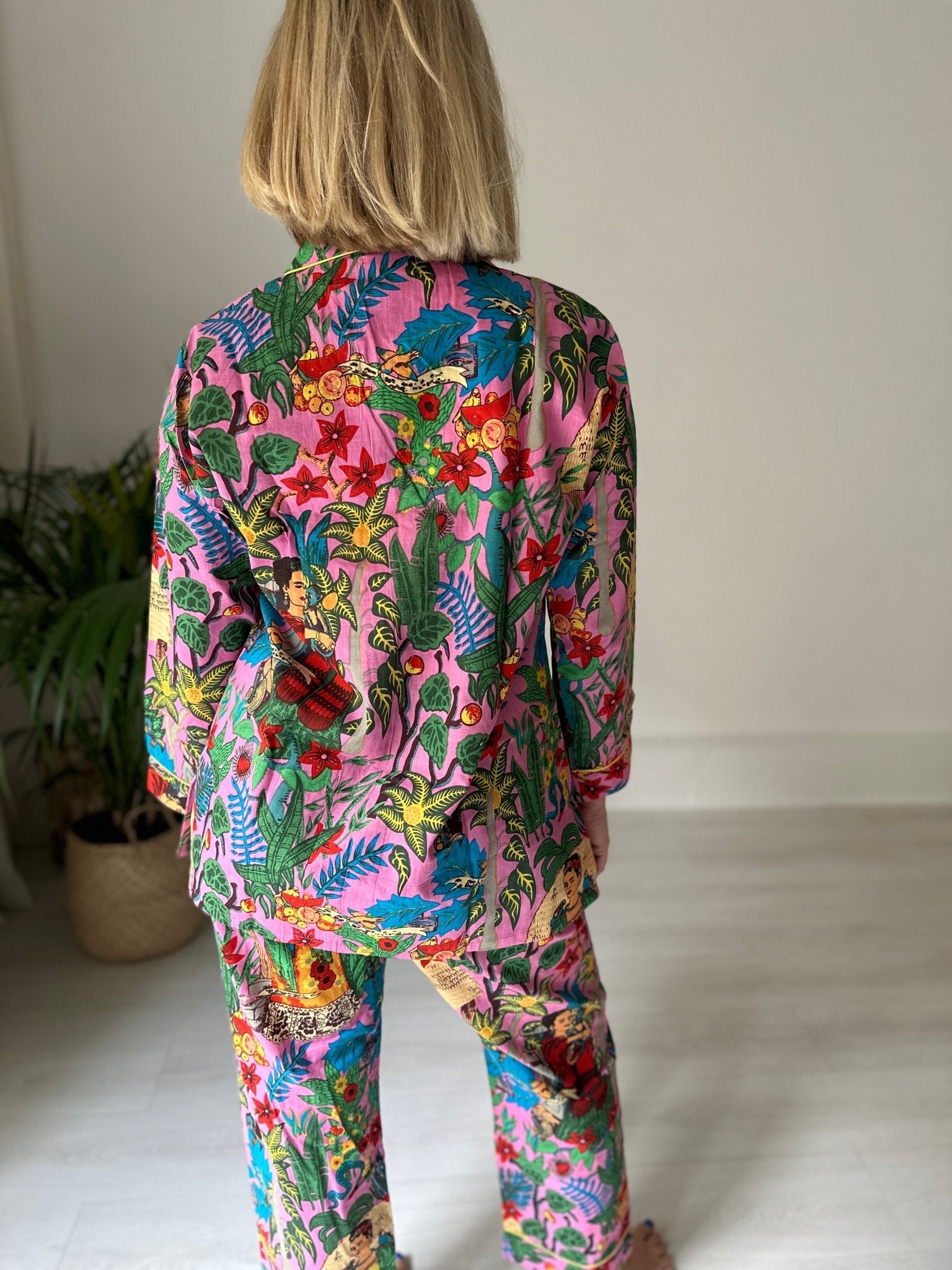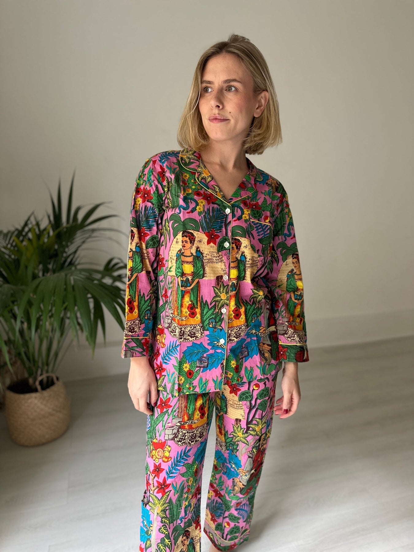 Our button-up pyjamas have been so popular in store that we've made them available online too! We love the piped detail around the sleeves and collar, and they come complete with a charming matching bag, ready for a night away!