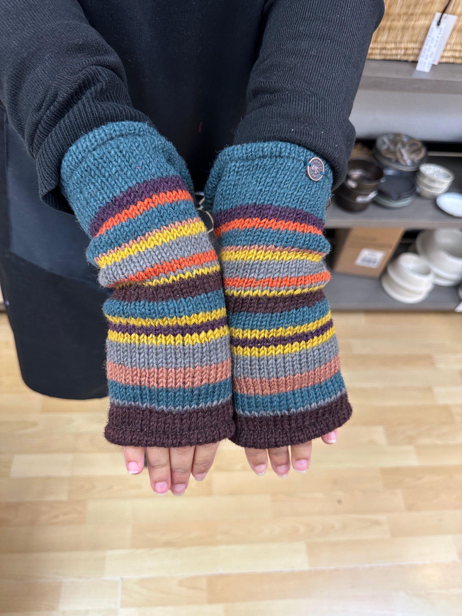 Our wristwarmers are fair trade and hand made in the Himalayas using high quality, pure new sheep's wool and safe dyes.