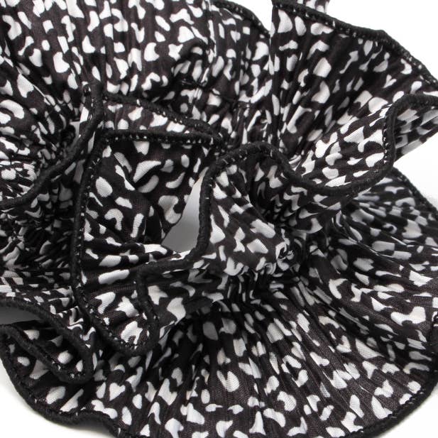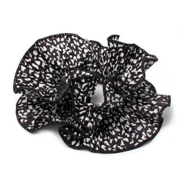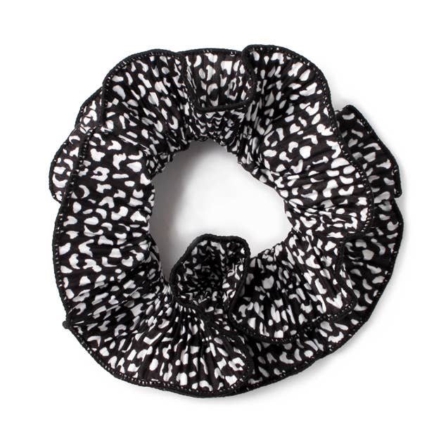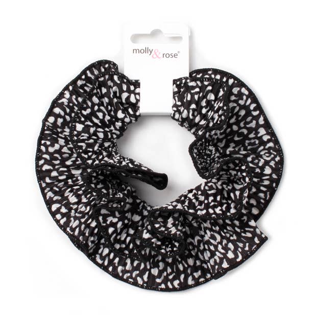 • Black and white animal print ribbed scrunchie with 2 ruffled layers