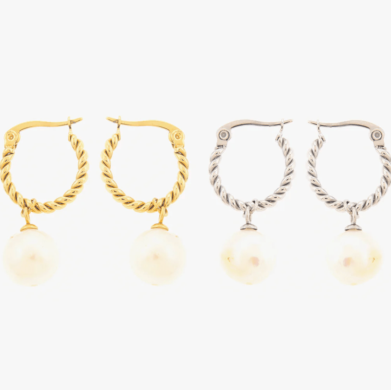 The twisted rope texture adds subtle detail, while the smooth pearl drop brings softness and movement.