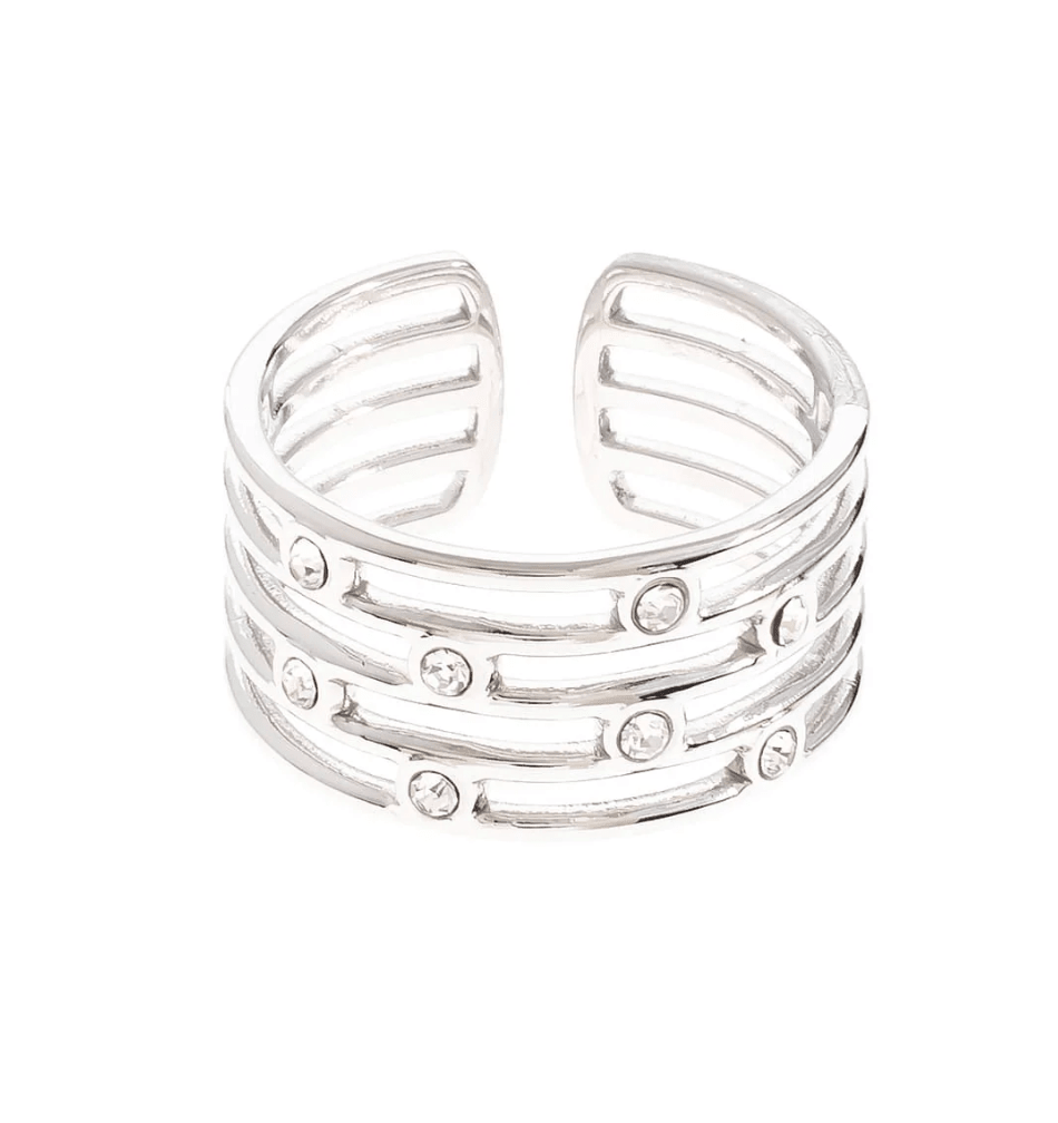 A bold everyday statement made effortless. Our Wide Adjustable CZ Ring features layered bands with sparkling cubic zirconia stones for a modern, stacked look — all in one easy-to-wear piece.