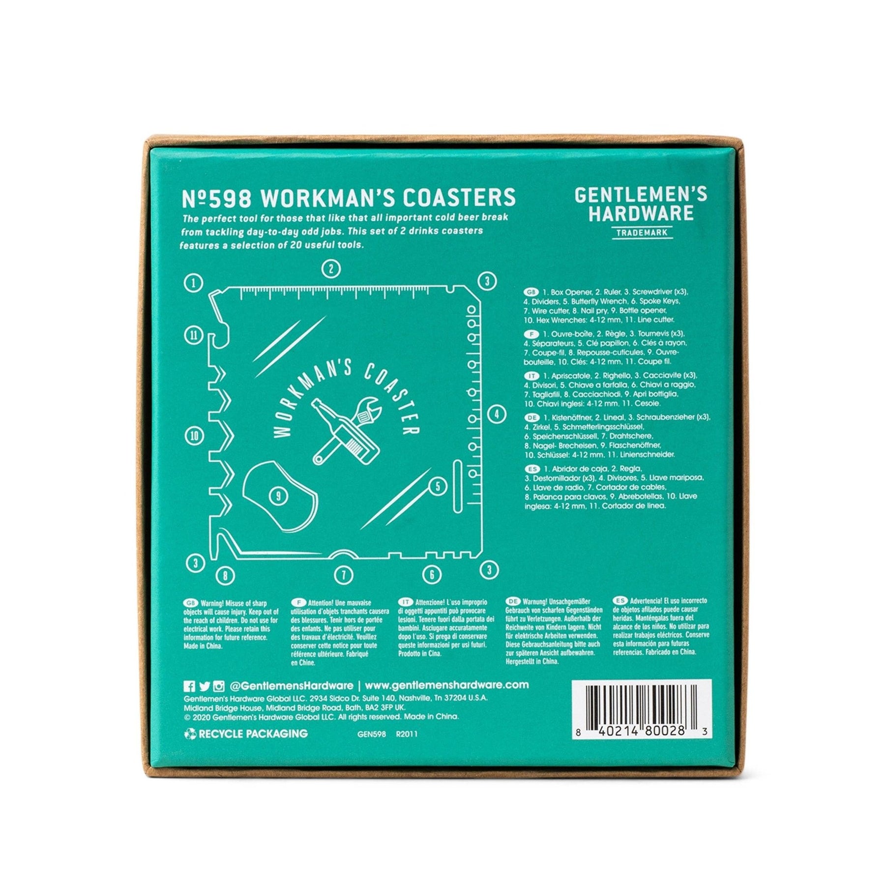 The perfect tool for those that like that all important cold beer break from tackling day-to-day odd jobs. This set of 2 drinks coaster features a selection of 20 useful tools.