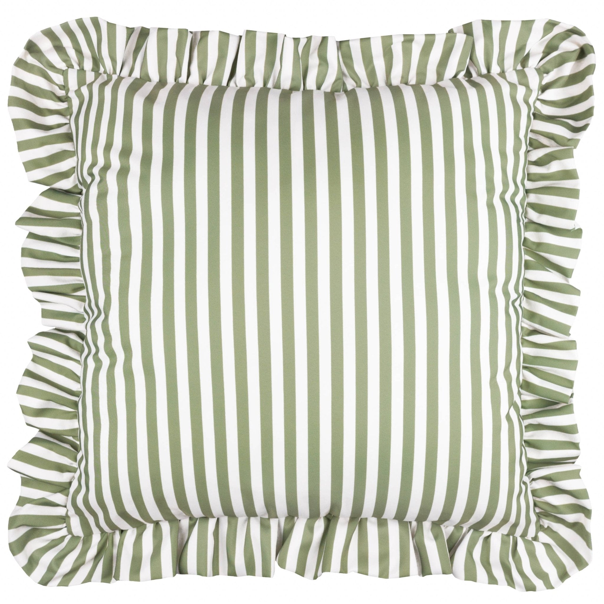 The Millie Ruffle Striped Outdoor Cushion transforms outdoor spaces with its sophisticated double-sided heritage stripe design. Elevated by elegant ruffle trim detailing, this cushion offers versatility, creating inviting outdoor environments. The classic yet modern striped pattern adds timeless charm to patios, terraces, and garden areas whilst the durable construction withstands regular use.