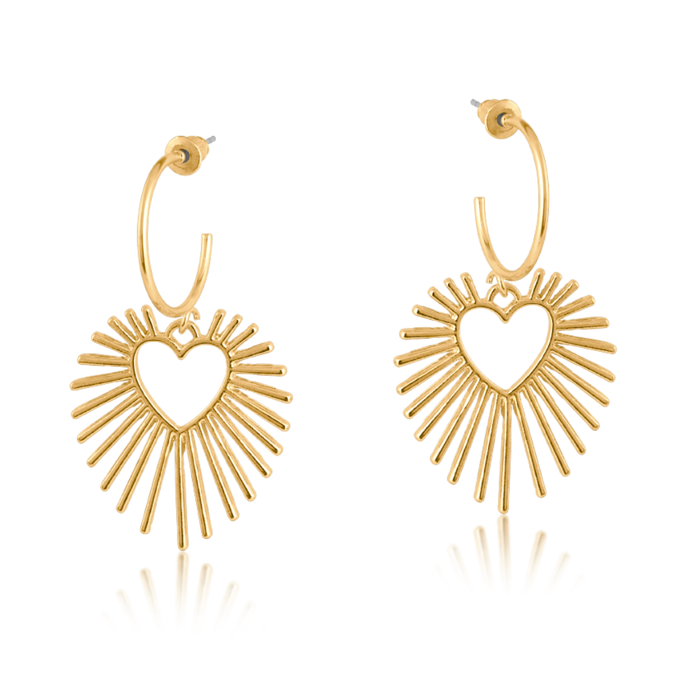 These gold plated hoop earrings combine a high-shine finish with a hand-crafted sunburst shape. A beautiful accessory to complete any outfit. At least 50% of the brass we use in the jewellery make is recycled from leftover/overhead brass. All posts are hypoallergenic made from surgical steel.
