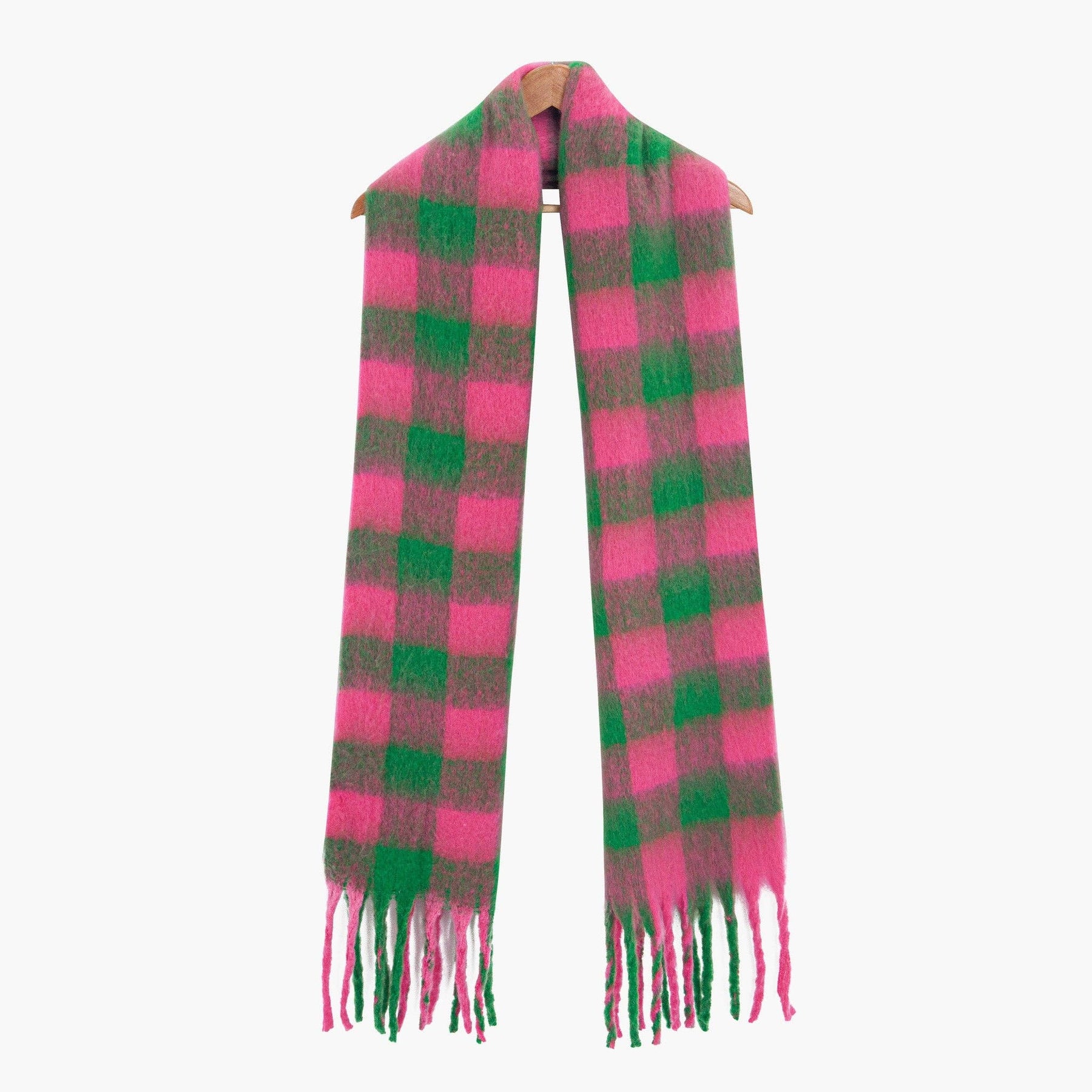 A classic striped winter scarf crafted from soft knitted polyester. Showcasing contrasting horizontal rainbow stripes and a bohemian influenced colourful tasselled fringe. Designed for warmth, this scarf can be effortlessly paired with outdoor winter attire.