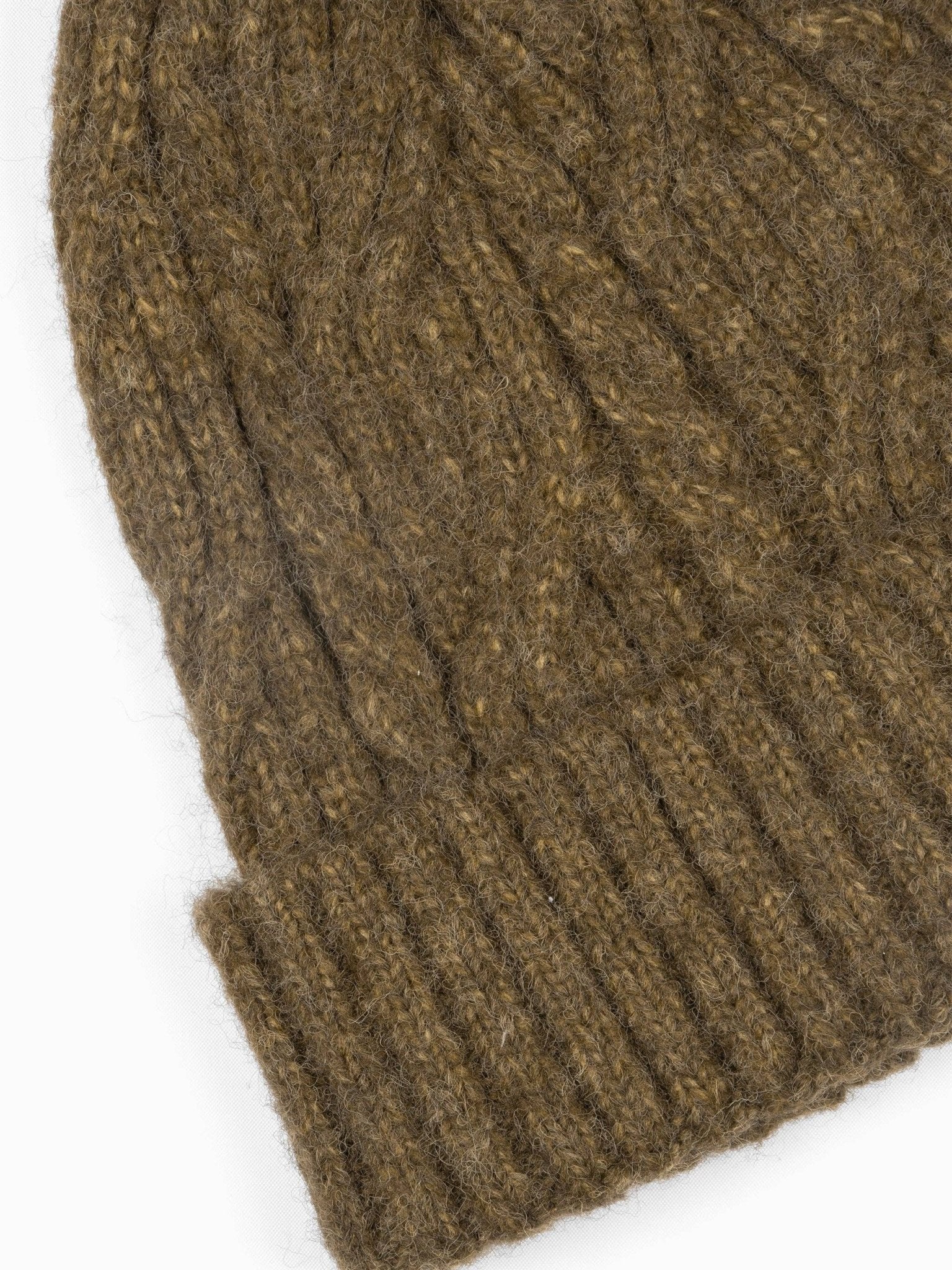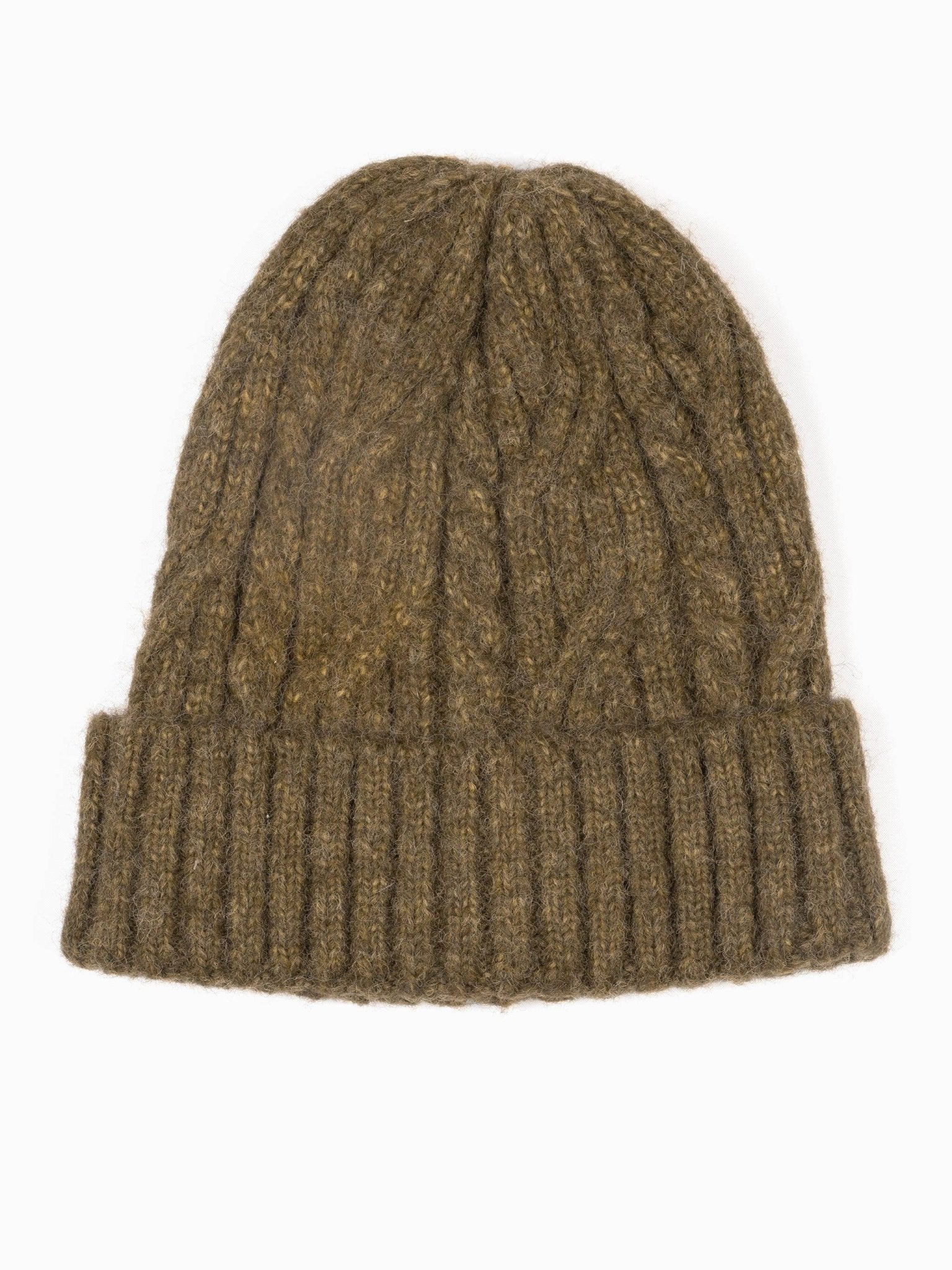 A classic winter beanie hat crafted from a warm cable knit acrylic yarn. This classic khaki winter hat can be effortlessly paired with any attire.