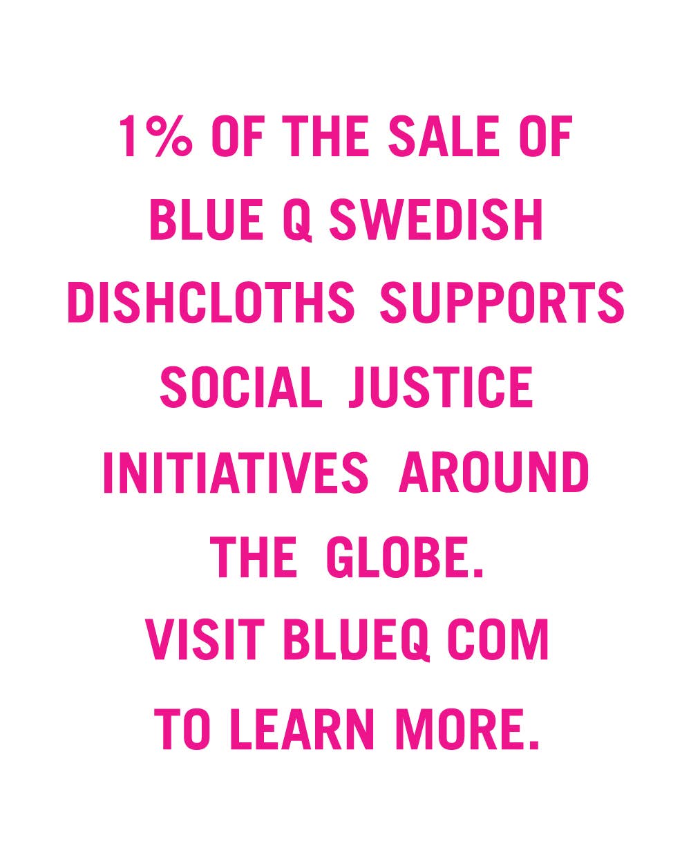 Your favorite new cleaning friend! Made with sustainably-sourced wood cellulose and scrap cotton fibers. 7.75"h x 6.75"w. 1% of the sale of Blue Q Swedish Dishcloths supports Social Justice programs around the world.