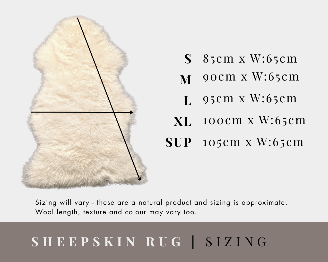 Colouring may vary from natural tones from whiter ivory to creamier naturals. Wool texture, length and density may vary too as well as shaping. The beautiful thing about these sheepskins is seeing the various tones and textures of each skin.