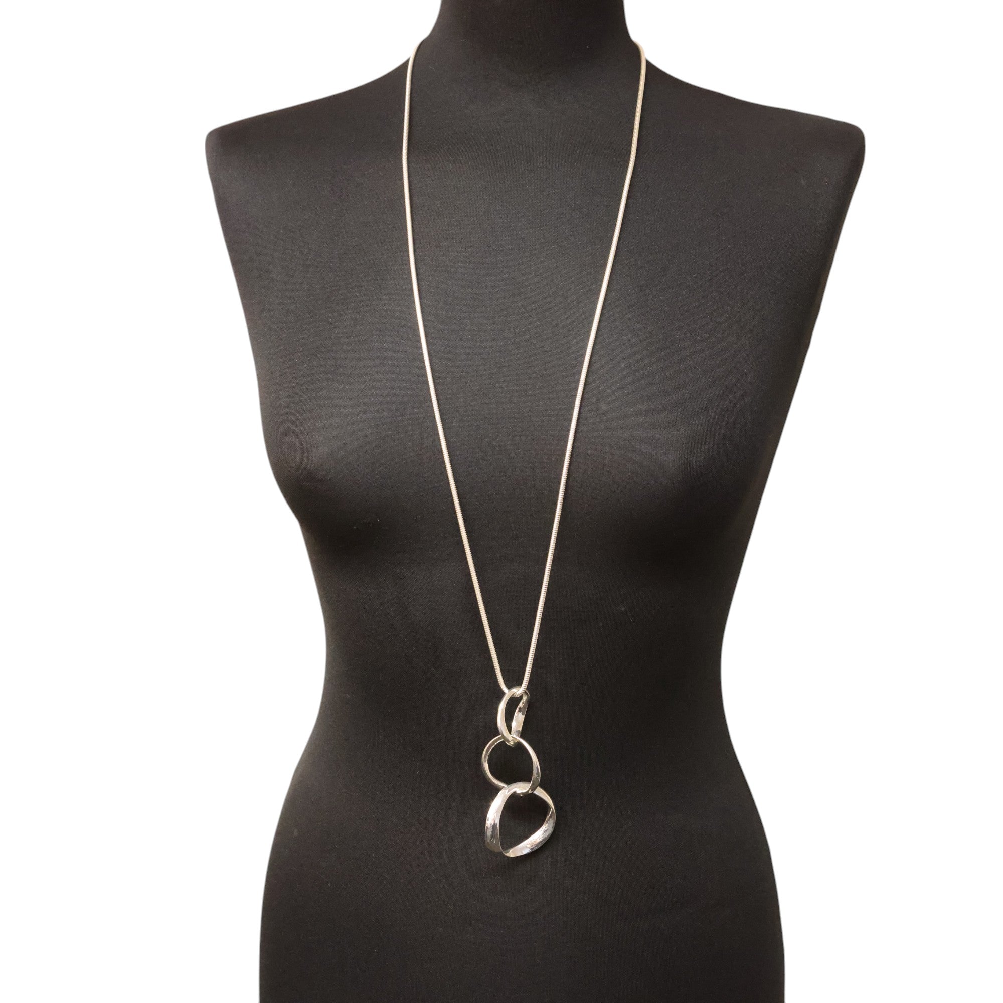 Tribal 3 Hoop Long Pendant Necklace in Silver Colour